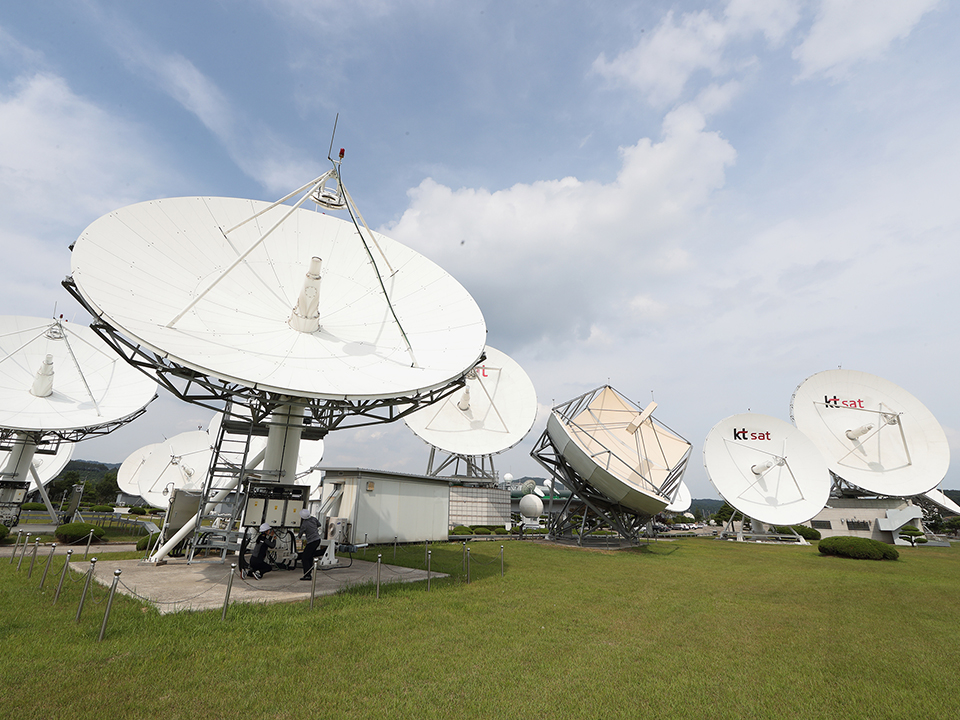 대한민국 위성∙우주산업은 예상보다 일찍 시작됐다. 1957년 10월, 세계 최초의 인공위성 ‘스푸트니크 1호’가 발사에 성공한 지 13년 만인 1970년 6월 ‘금산위성센터’가 문을 열었다. 개소 당시 미국, 일본, 대만 등 태평양 연안 7개국을 대상으로 136회선으로 서비스를 시작했지만 현재 kt sat 금산위성센터는 45개 초대형 고성능 안테나와 7,000회선을 보유한 아시아 최대 위성 텔레포트(Teleport)로 발돋움했다. 용인과 대전 지구국에는 총 10개의 위성 안테나가 운용 중이다.